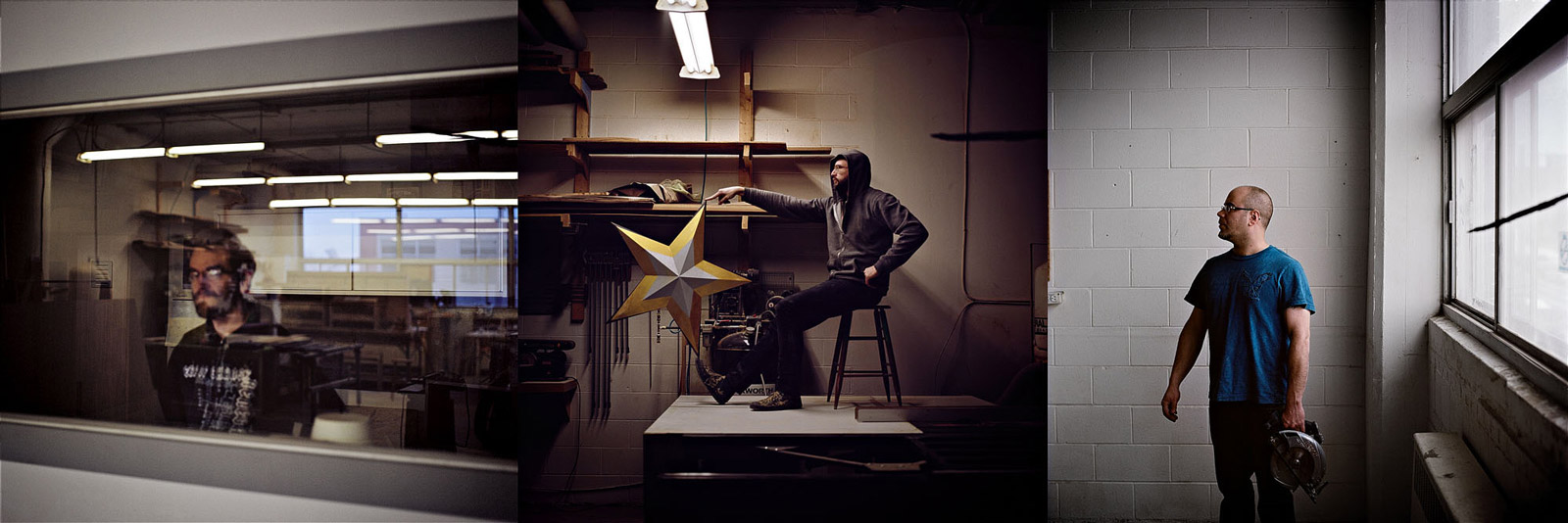 Il y a quelques années, les associés d’une compagnie de menuiserie créative m’ont demandé de faire leur portrait de façon innovatrice. En gros, ils ne voulaient pas de portraits avec les bras croisés et un fond blanc comme arrière-plan. Ils ne tenaient pas non plus à ce qu’on voit leur visage entièrement.